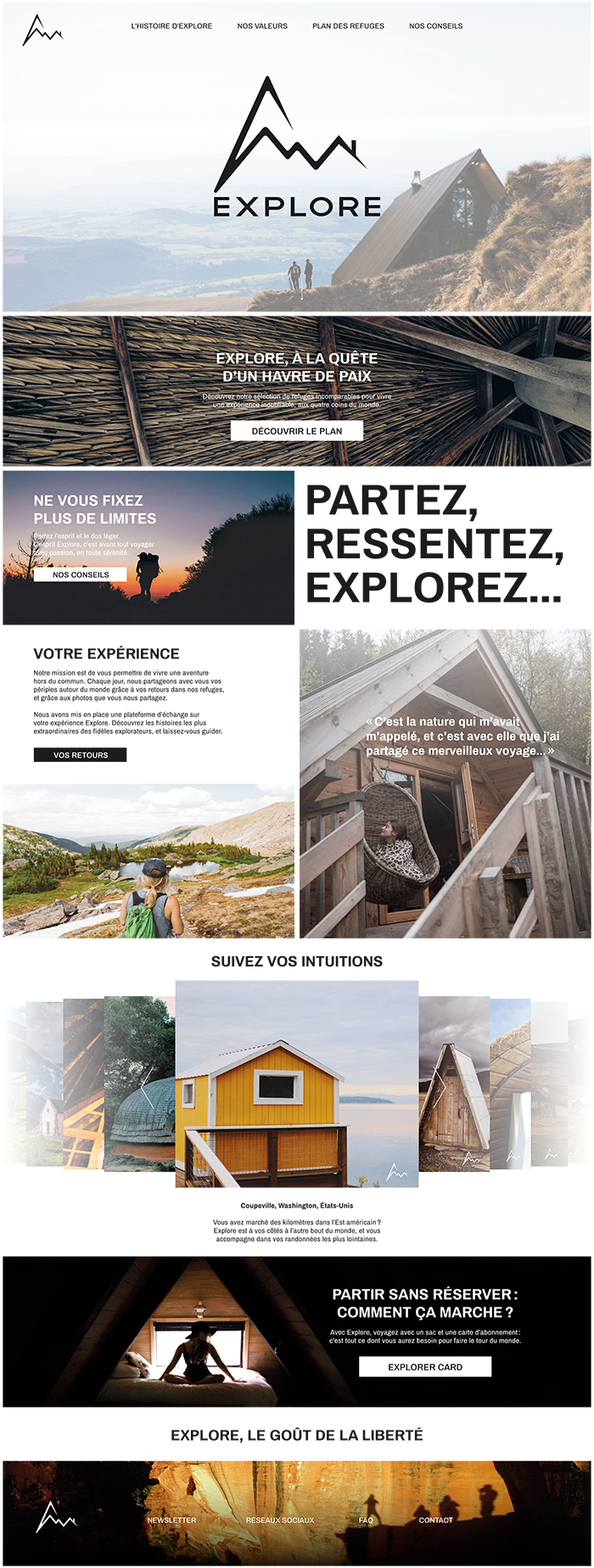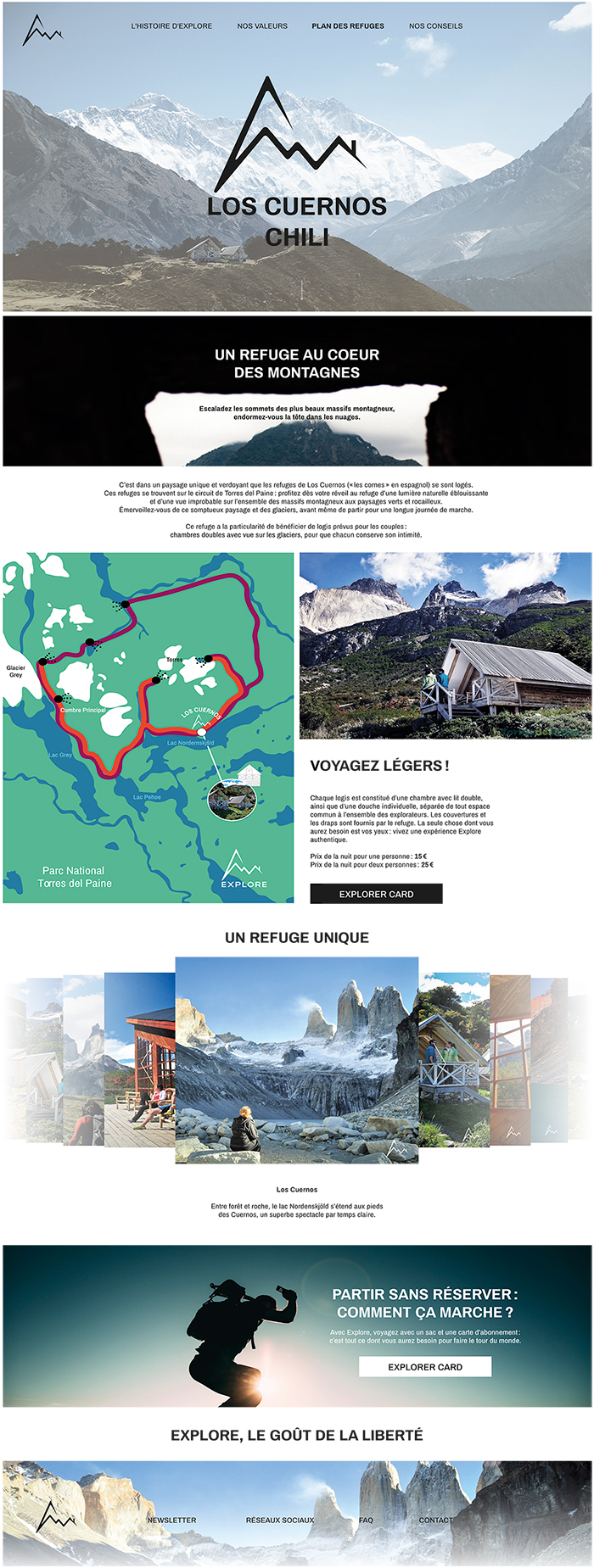 Et si Rip Curl étendait ses services à l'univers de la montagne? Retrouvez ici ma création (fictive) de la marque Explore. Explore propose une chaîne de refuges pour les randonneurs aux quatre coins du monde: création d'un site internet, d'un compte instagram, d'un sac, une gourde, une carte de fidélite, des mapes, et d'un brand book...