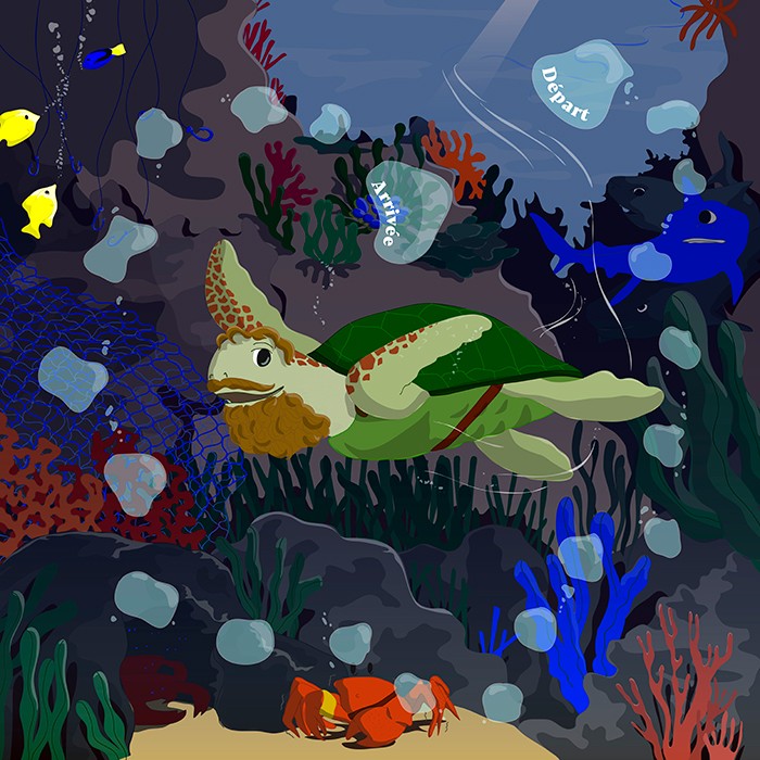 La tortue Ulysse revient d'un long voyage, elle a encore quelques obstacles à surmonter avant de pouvoir retrouver son nid. Aidez-la en répondant correctement aux questions posées dans les cartes...