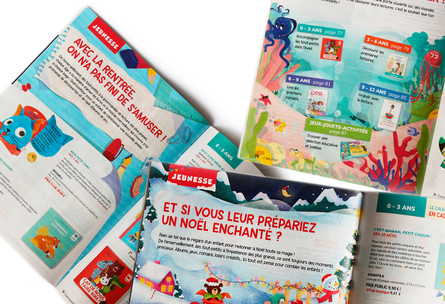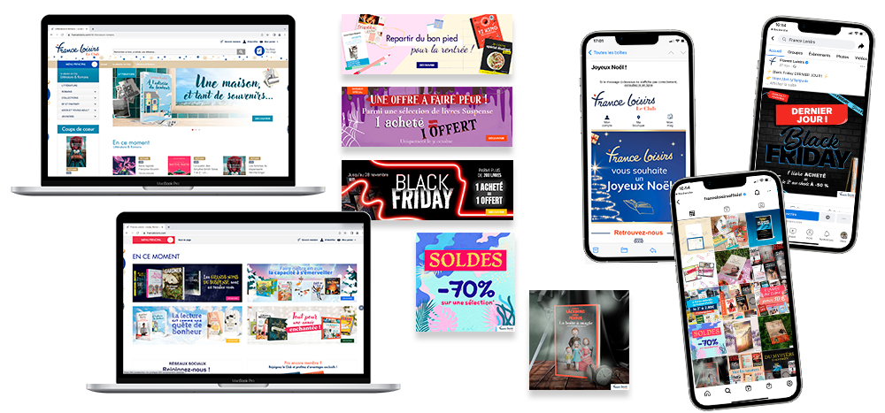 Actuellement graphiste pour la maison d'édition France Loisirs, mon travail consiste en la création et la déclinaison des divers supports de communication prints et numériques: maquettes de catalogues, flyers, PLV, visuels pour le site internet et les réseaux sociaux, emailings, montage de vidéos, illustration des livres et des catalogues... Travaillant au sein du pôle créatif de la maison d'édition, je participe au renouvellement créatif en apportant ma personnalité graphique tout en restant garante de la charte, afin de proposer un contenu attractif via nos différentes plateformes de communication.