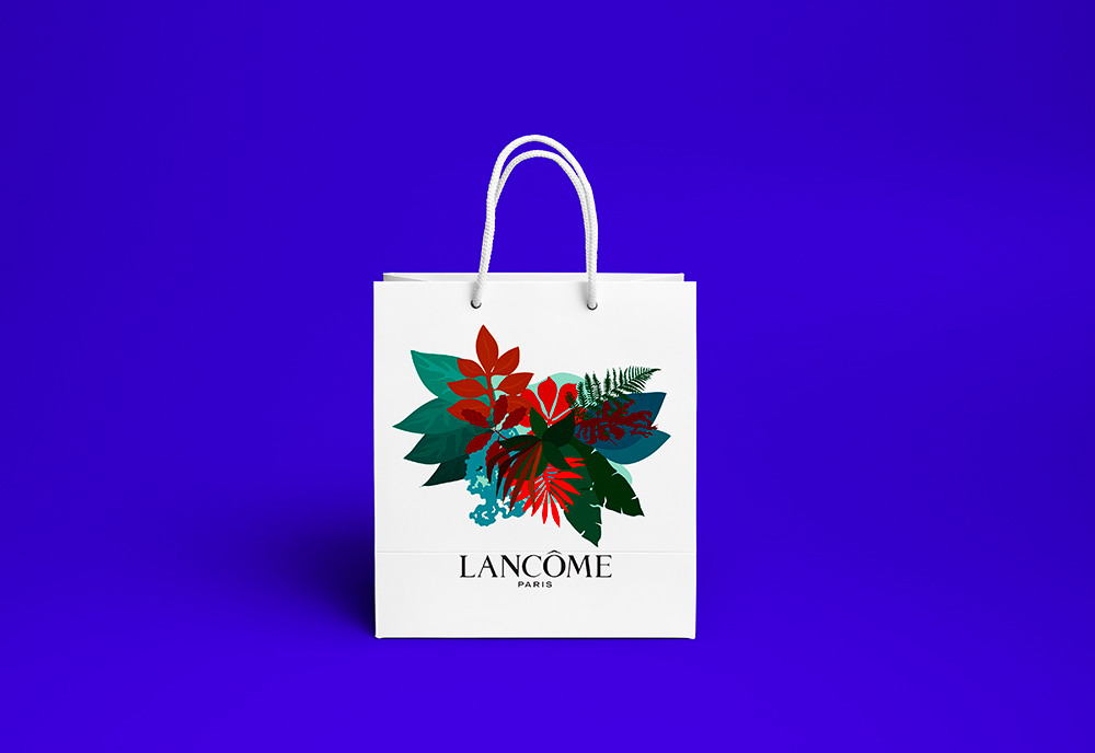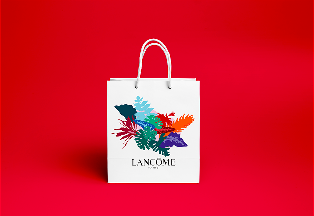 Lancement d'une gamme (fictive) bio et vegan pour Lancôme: rouges à lèvres, sacs, vitrine, affiches, dépliants...