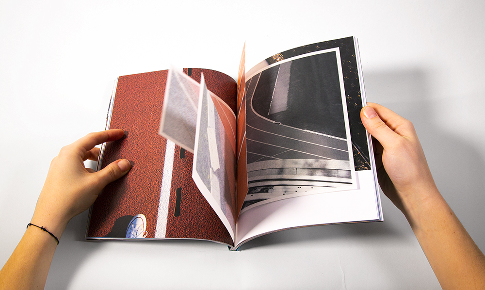 Série de photos réalisées dans les stades d'Ivry. Elle a donné lieu à une édition reliée à la main, présentant différents formats de pages. Celles-ci se supersposent et donnent un dynamisme à l'édition avec des jeux graphiques à l'aide de détails pris à part de cet univers particulier qu'est celui du monde sportif.